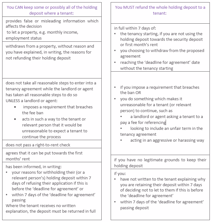 This guide is a summary of the holding deposit rules, which can be found in the Tenant Fees Act 2019 and its detailed guide here.
